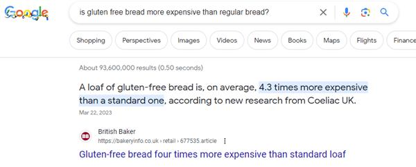 What the fuck is going on then? Bread makes a lot of people feel bad when they eat it, I have no doubt, but there’s no logical equation that would point at gluten as the gastronomically offending component of bread. So then why do so many people believe that they’re sensitive to gluten? Is there anyone that would benefit from this belief? A quick google search returned a fast “yes” to the last question, and sure as shit there are massive corporate interests that benefit greatly from wide spread self-diagnosed gluten intolerance, see below snip of my google search.